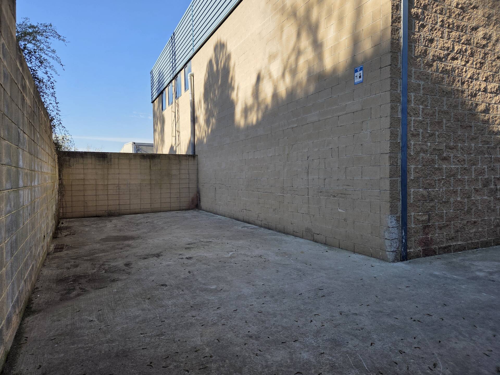 Nave Industrial adosada y esquinera con un patio lateral posterior y delantero que suma 350m2 aproximadamente,
